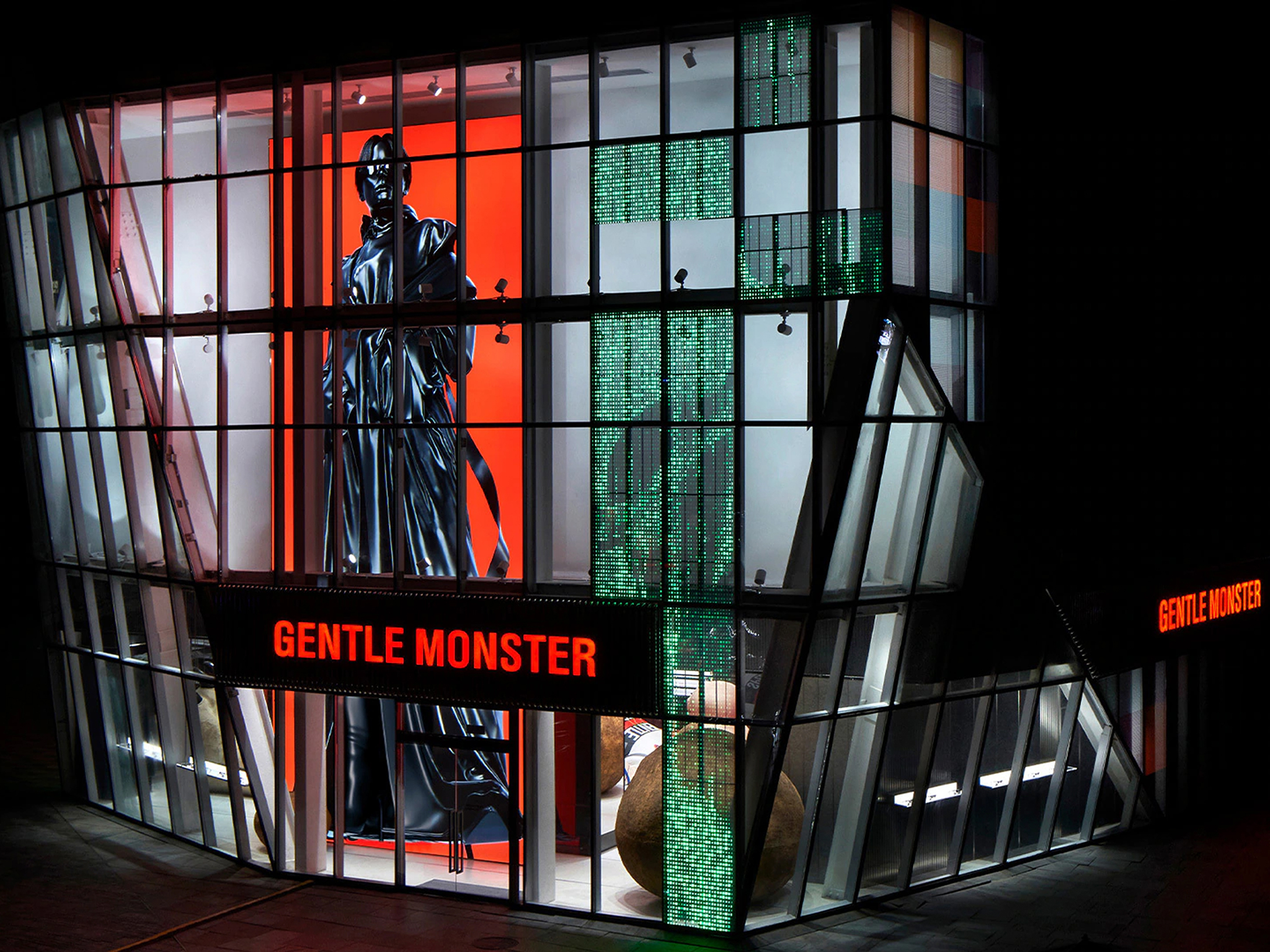 ジェントルモンスターのロゴとタイプフェイスのデザインは Or Type によって担当されました。私はオブジェクト&グラフィックチームと協力して、2世代目のロゴの方向性、デザイン、タイプフェイスを指導し管理しました。このロゴは製品、キャンペーン、空間、パッケージなど、ブランドのすべての応用に適用されました。現在のジェントルモンスターの第3世代のロゴは、2023年に新たにデザインされてリフレッシュされました。