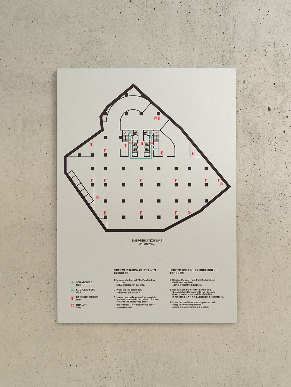 지난 9월 오픈한 아이아이컴바인드 신사옥 HAUS NOWHERE SEOUL의 공간 사이니지 그래픽 디자인을 진행했습니다. 하우스 노웨어 서울은 젠틀몬스터, 탬버린즈, 누데이크, 어티슈, 누플랏 브랜드와 아이아이컴바인드 오피스가 함께 구성된 공간으로, 지하 5층부터 지상 14층까지의 규모를 갖고 있습니다. 공간의 톤에 맞춰 간결함을 유지하면서도 정확하고 충분한 정보 전달이 가능하도록 정보의 위계와 그래픽 레이아웃을 설계했습니다. 층별 구성과 동선을 고려해 방문자가 공간을 직관적으로 인지할 수 있도록 사이니지 시스템을 구성했습니다.