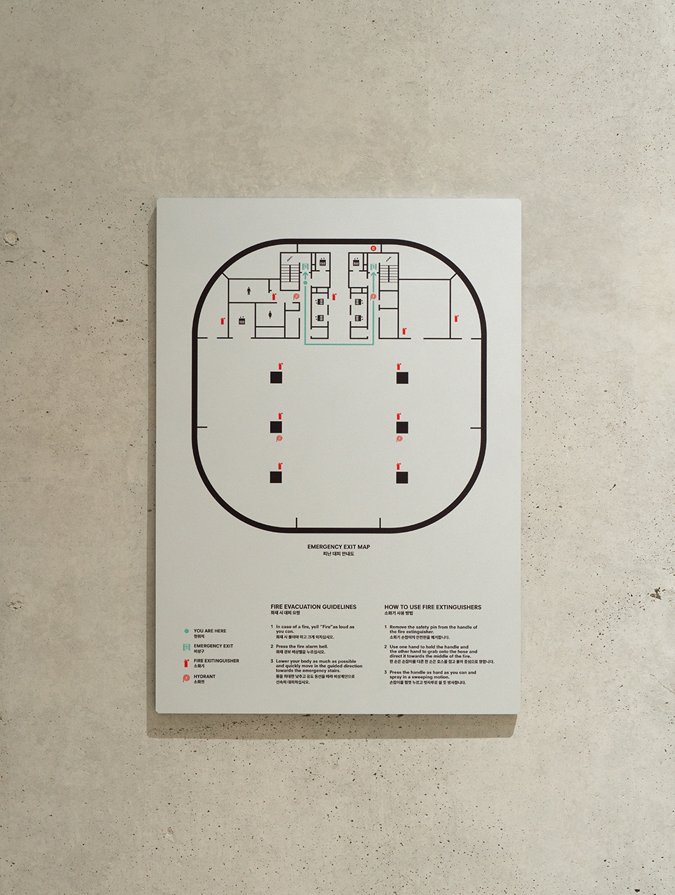 HAUS NOWHERE SEOUL is a mixed-use space housing the brands GENTLE MONSTER, TAMBURINS, NUDAKE, ATIISSU, and Nuflaat, together with IICOMBINED’s offices, spanning from five basement levels to fourteen floors above ground. The signage graphics were developed to align with the tone of the space, prioritizing clarity and visual consistency through a considered information hierarchy and graphic layout. The graphics support intuitive spatial recognition and navigation across the building by responding to floor composition and circulation. Client: IICOMBINED Creative Direction: GENTLE MONSTER (TAESEOK PARK, JAEKYEONG LEE, RAYOUN HWANG) Lead Graphic Designer: HEEWON LEE Assistant Graphic Designer: SUNGMIN LEE Photography: YI LAKYEOM