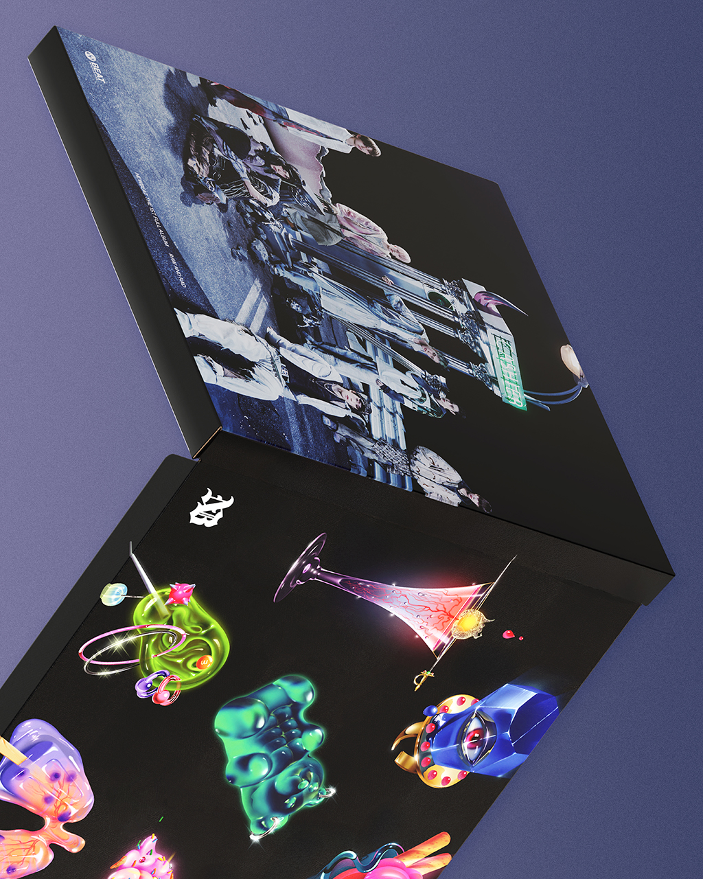 NEWBEAT의 굿즈 및 패키지 그래픽 디자인을 진행했습니다. 패키지는 멤버별 상징 일러스트가 적용된 티셔츠를 중심으로 구성되었으며, 각 구성품은 택(tag) 형태의 그래픽 요소로 풀어내 티셔츠 굿즈의 콘셉트와 방향성을 시각적으로 강화했습니다.